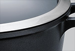 不锈钢低弧度包边玻璃盖与锅沿紧密结合,具有水密封低压效果,牢牢锁住食物营养